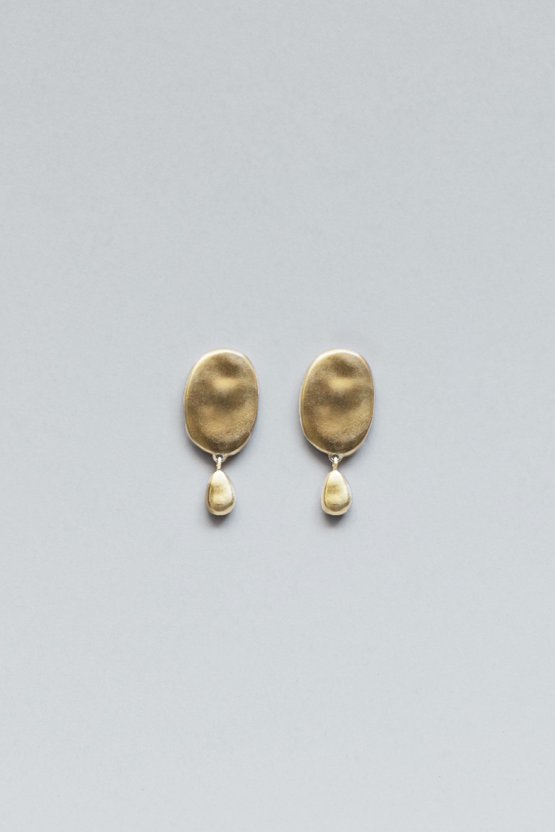 Pendientes ovalados y planos acabados con una pequeña gota suspendida.
